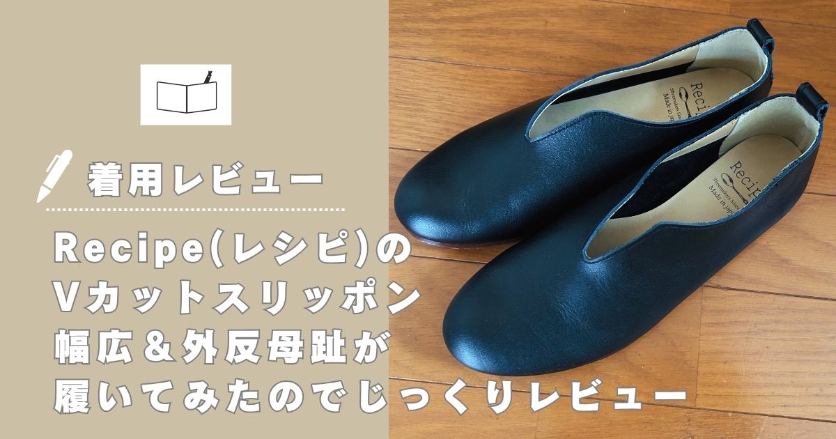 履きやすいと噂のRecipe(レシピ)のシューズを幅広、外反母趾があるわたしが実際に履いてみました。
